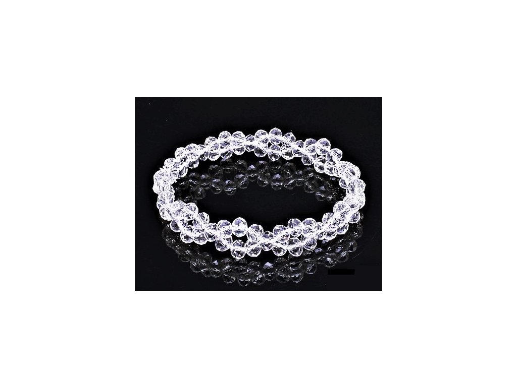 Křišťálový náramek fasetovaný - křišťálové skleněné korálky fasetované (6 mm x 5 mm) navlečené na gumičce, délka cca 19 cm