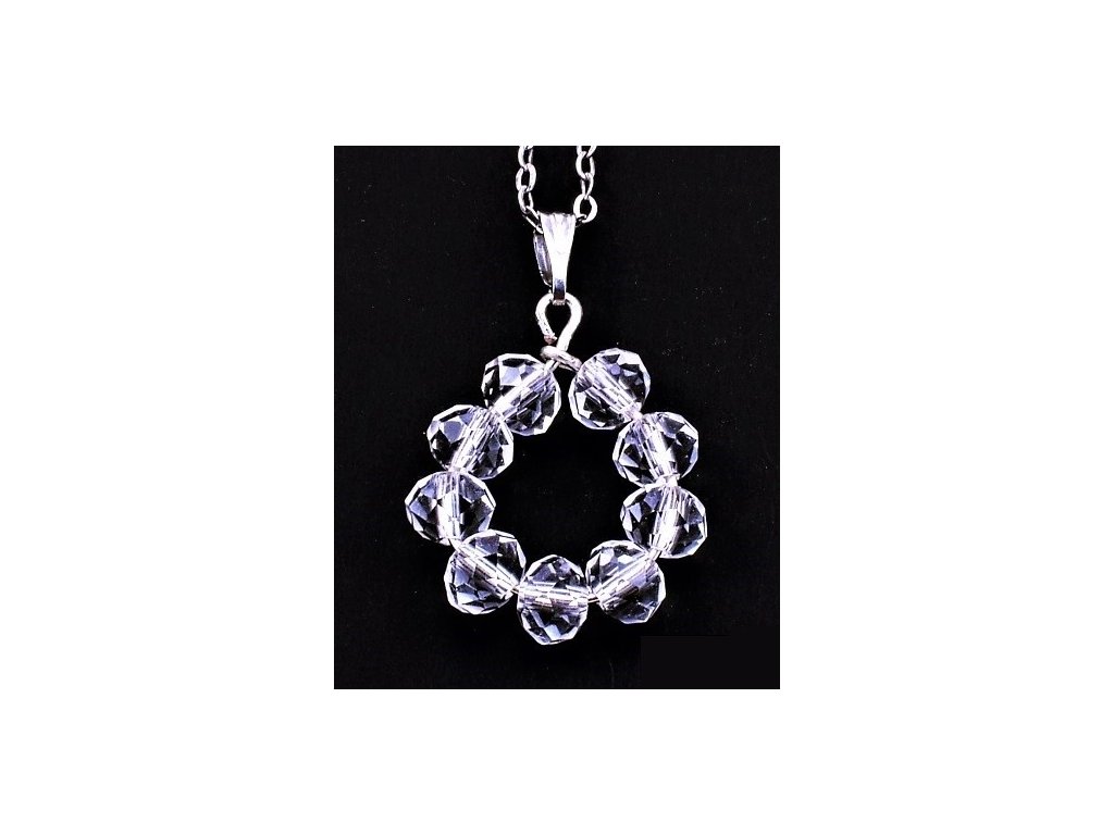 Křišťálový přívěsek fasetovaný kruh - křišťálové korálky fasetované ( 6 mm x 5 mm) navlečené na kruhovém trnu s postříbřeným háčkem, výška cca 3 cm