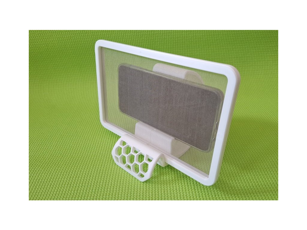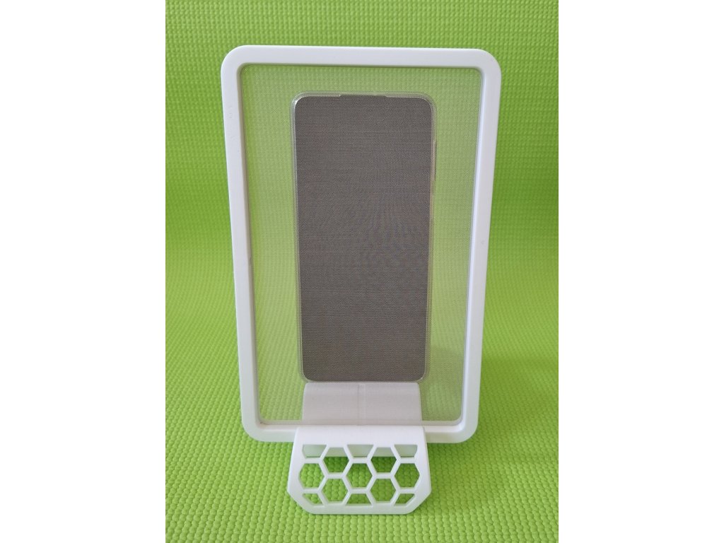 Námi navržený stojánek je vyroben v bílé barvě a obsahuje stínící látku Silver Vision vyrobenou ze 100% postříbřeného polyamidu. Stojánek je také stylový a designově velmi povedený. Mobilní telefon do stojánku můžete umístit nastojato či naležato. Stojánek na mobil je navíc opatřen nejsilnějším ochranným symbolem posvátné geometrie, kterým je květ života.